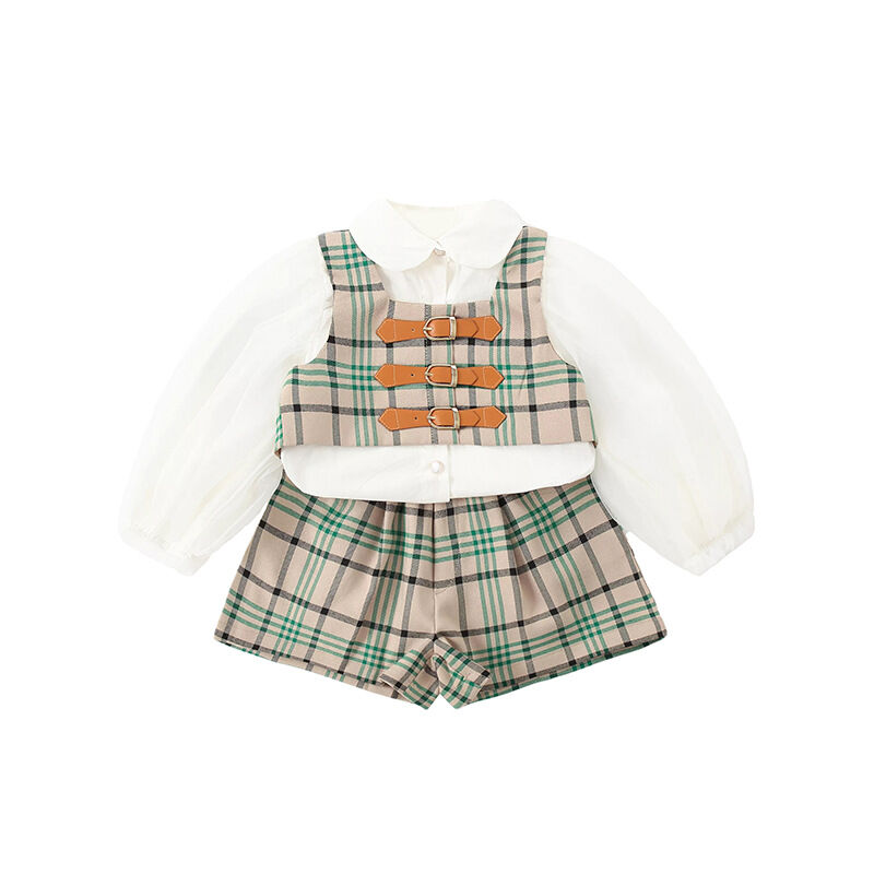 Mesh Sleeve Shirt , Plaid Waistcoat & Shorts quantity